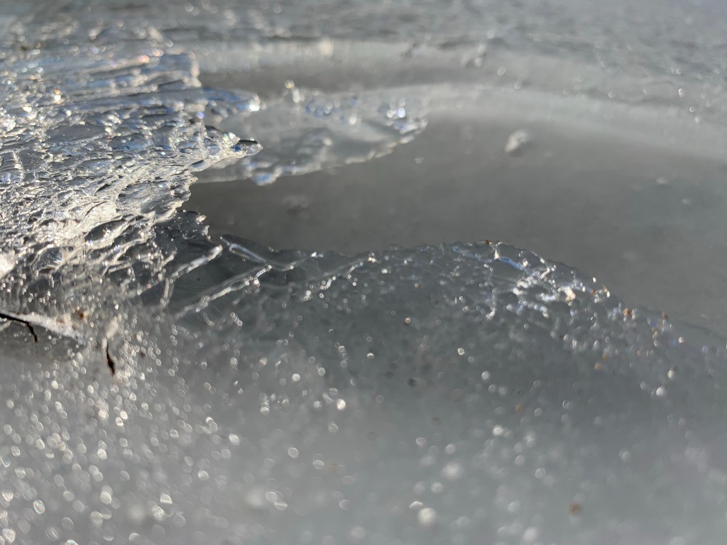 Until then, we have ice. So much ice. The area next to the boat ramp was an icy nature museum today.