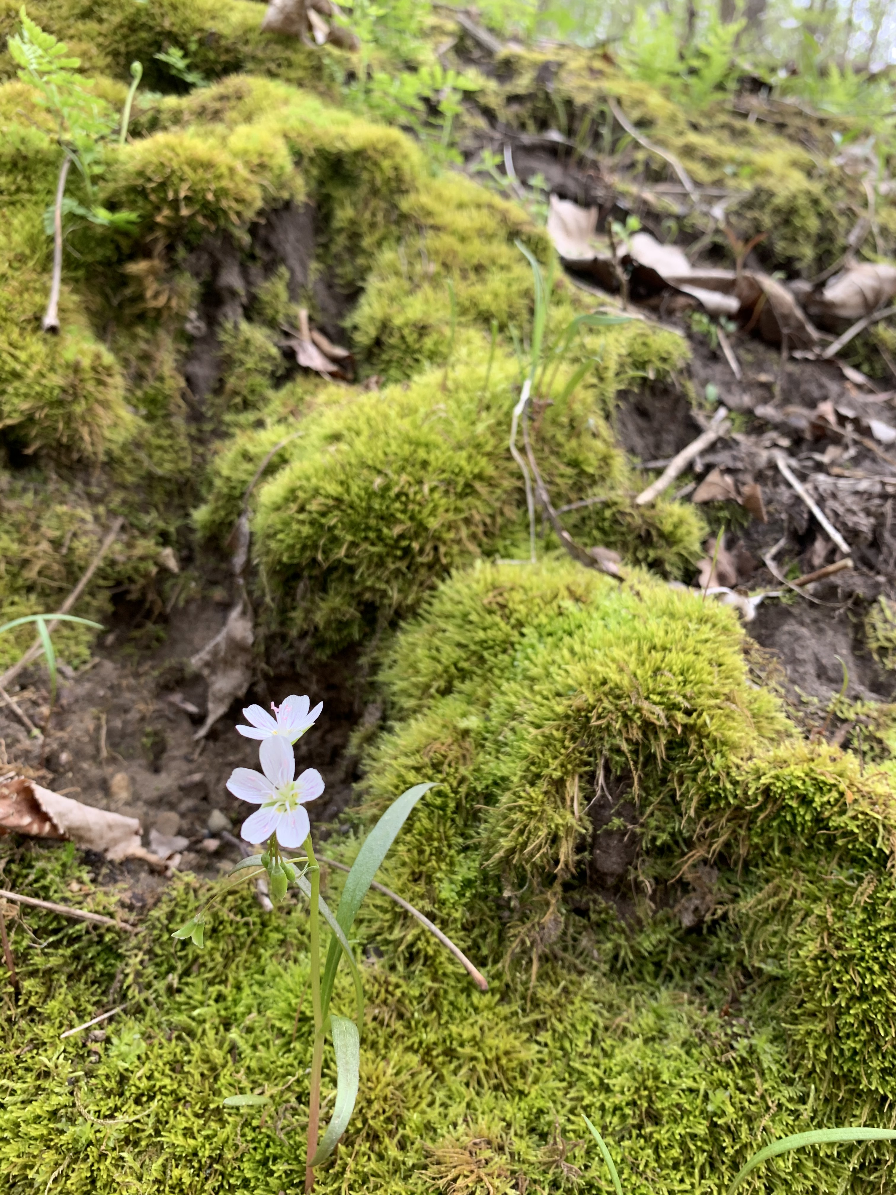 If I could capture that hillside, turn it into a song or a pill or a drink, I would. If I could bring back the feeling of that hillside on demand, I’d be so much closer to okay. I could’ve spent hours there, listening and feeling, seeing and knowing. There’s so much life on that hillside — moss that made my downhill trek tricky, spring wildflowers and mushrooms along the stream, and the ever-present life growing from death. In that valley, I could feel the peace. The stream’s soothing whispers as it trickles toward the river, the constant creaking of the trees in the breeze — sounds of silence. Sounds of solace.