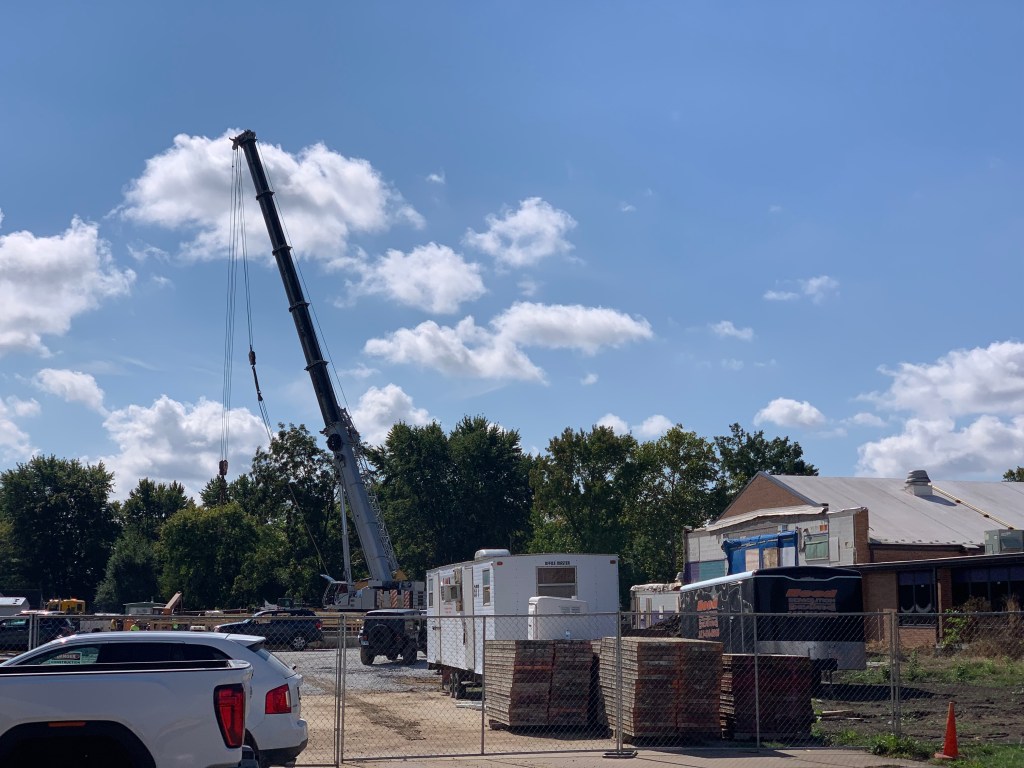 On a related note . . . Today, a gigantic, wall-setting crane looks an awful lot like a rainbow.