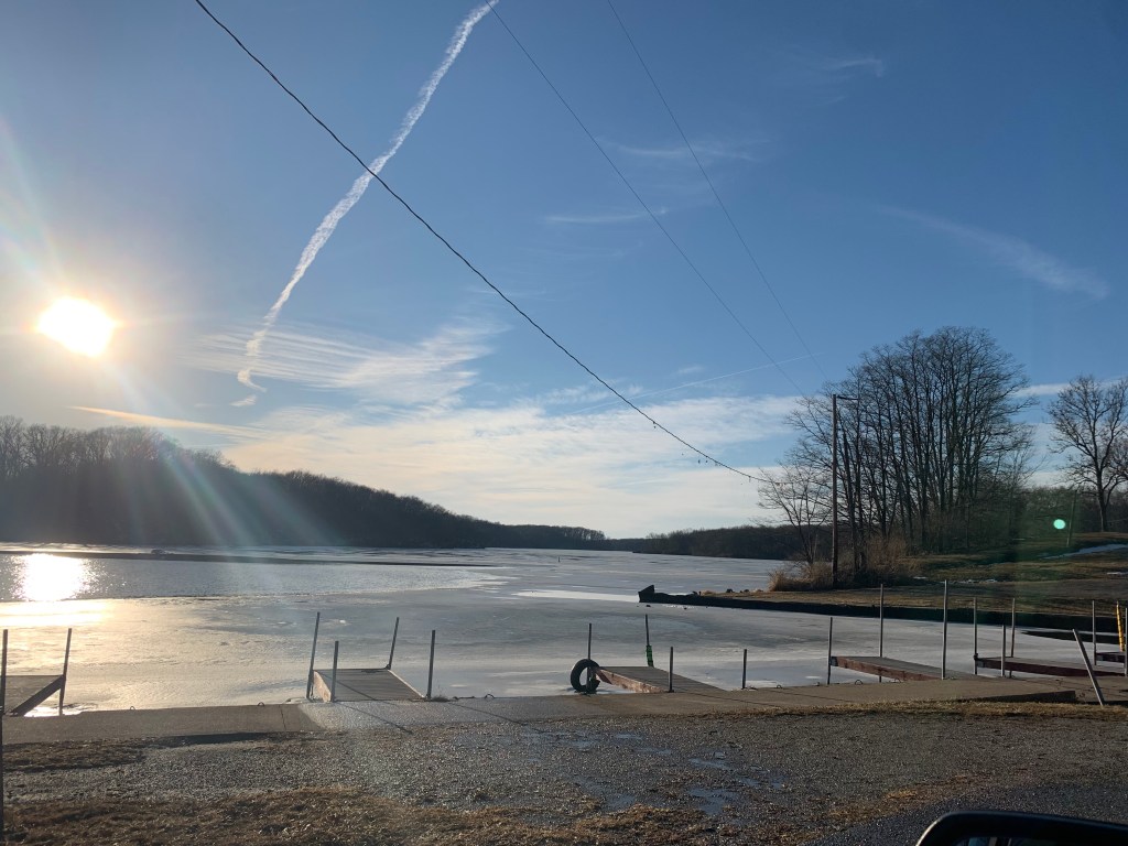Still, I could go for a drive. I decided to check on Spring Lake, see how the frozen situation was progressing. Still mostly frozen. Even frozen, the lake holds a promise of peace-on-a-paddleboard. Maybe I’ll get there more often this summer. I want to. I wanted to last year, too, but this year, I might be able to follow through on these dreaming-in-winter plans. I know what my hours on the lake have meant in the past; I’d like to rediscover that feeling. Soon.