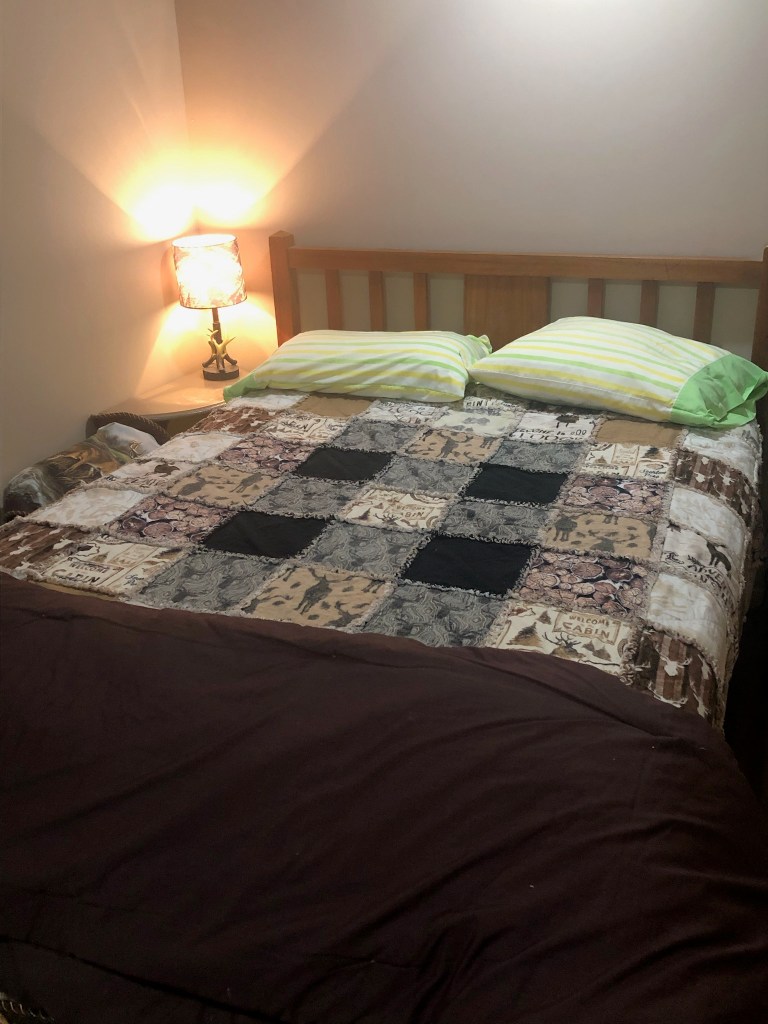That quilt is so much more than a quilt. That quilt is progress and love and memories all stitched together and wrapped around my soul. So much changed from the day I saw the lodge fabric to the day I finally finished the quilt. The world locked down. My world fell apart. Life lumbered on.